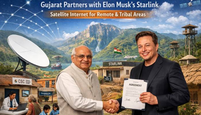 In a major push to bridge the digital divide, the Government of Gujarat has partnered with Elon Musk-owned Starlink (SpaceX) to pilot high-speed satellite internet connectivity across the state’s remote, border, and tribal areas.