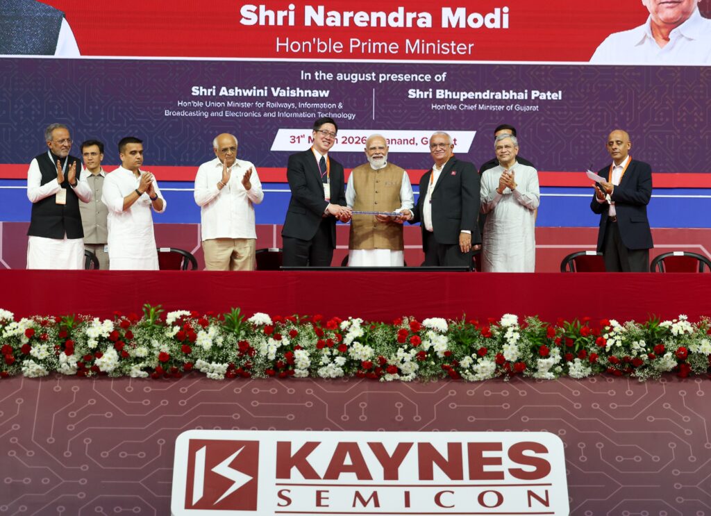 India’s Prime Minister Narendra Modi inaugurated the ₹3,300 crore semiconductor facility by Kaynes Semicon in Ahmedabad, marking a major milestone in India’s push to build a self-reliant semiconductor ecosystem.