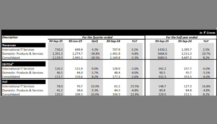 The domestic products and services division witnessed revenue of ₹1,391.3 crore, down 38.8% sequentially, but achieved stable gross contribution and EBITDA margin improvement. PAT for the division increased to ₹42.2 crore, a 9.3% QoQ rise, driven by improved operational efficiency and strategic focus on high-margin sectors. DSO and ROCE improved to 42 days and 43.8%, respectively, further boosting overall company performance.